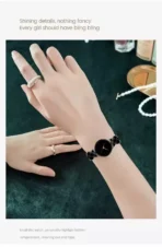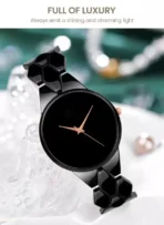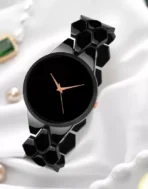 Round Black Formal Dial with Black Metal Bracelet Chain Strap